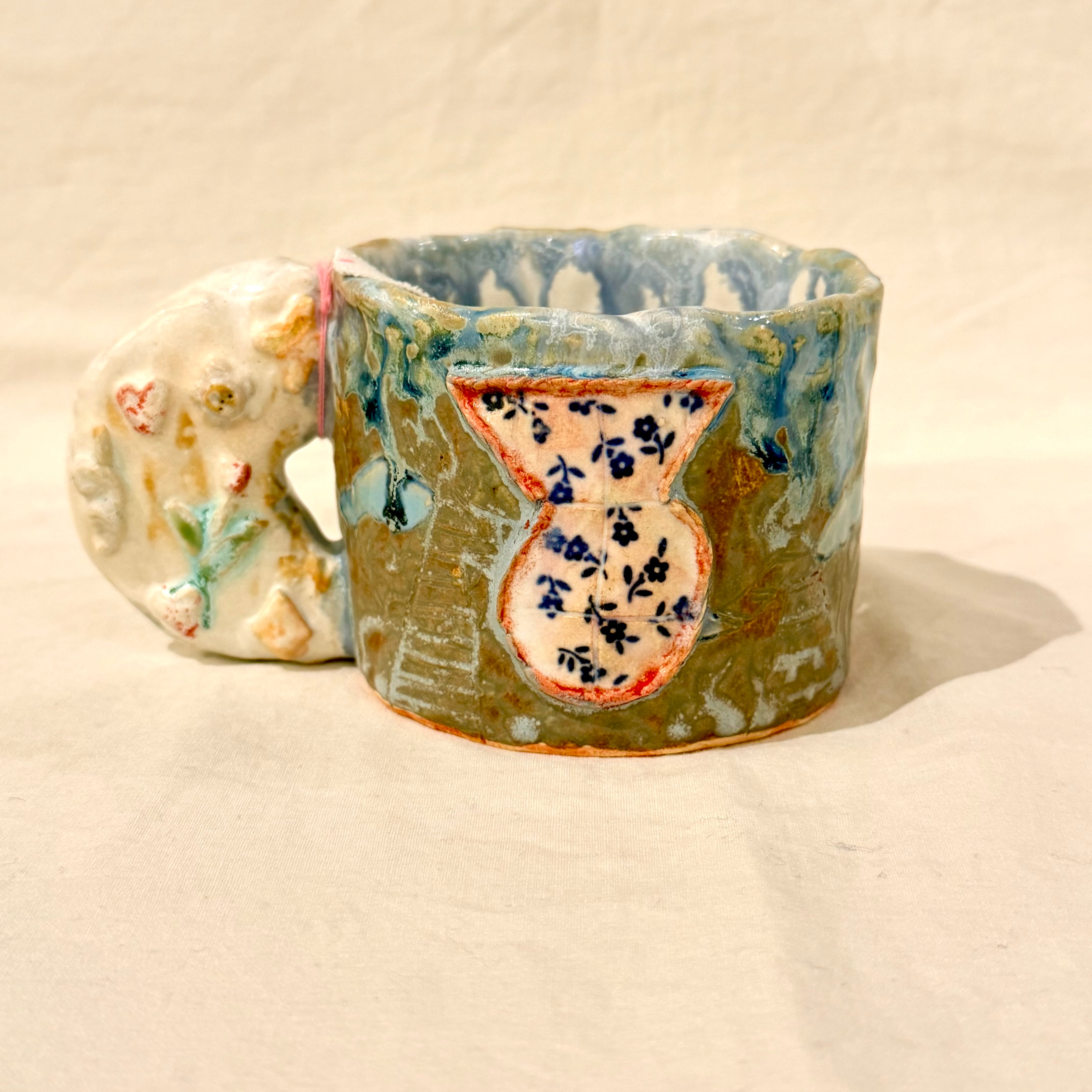 フベン/13.花柄の壺、ビーズのついた取手
